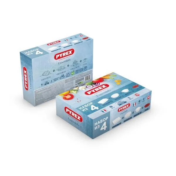 Набор Pyrex 4 предмета (кастрюля,блюдо прямоугольное,блюдо овальное,крышка силик)