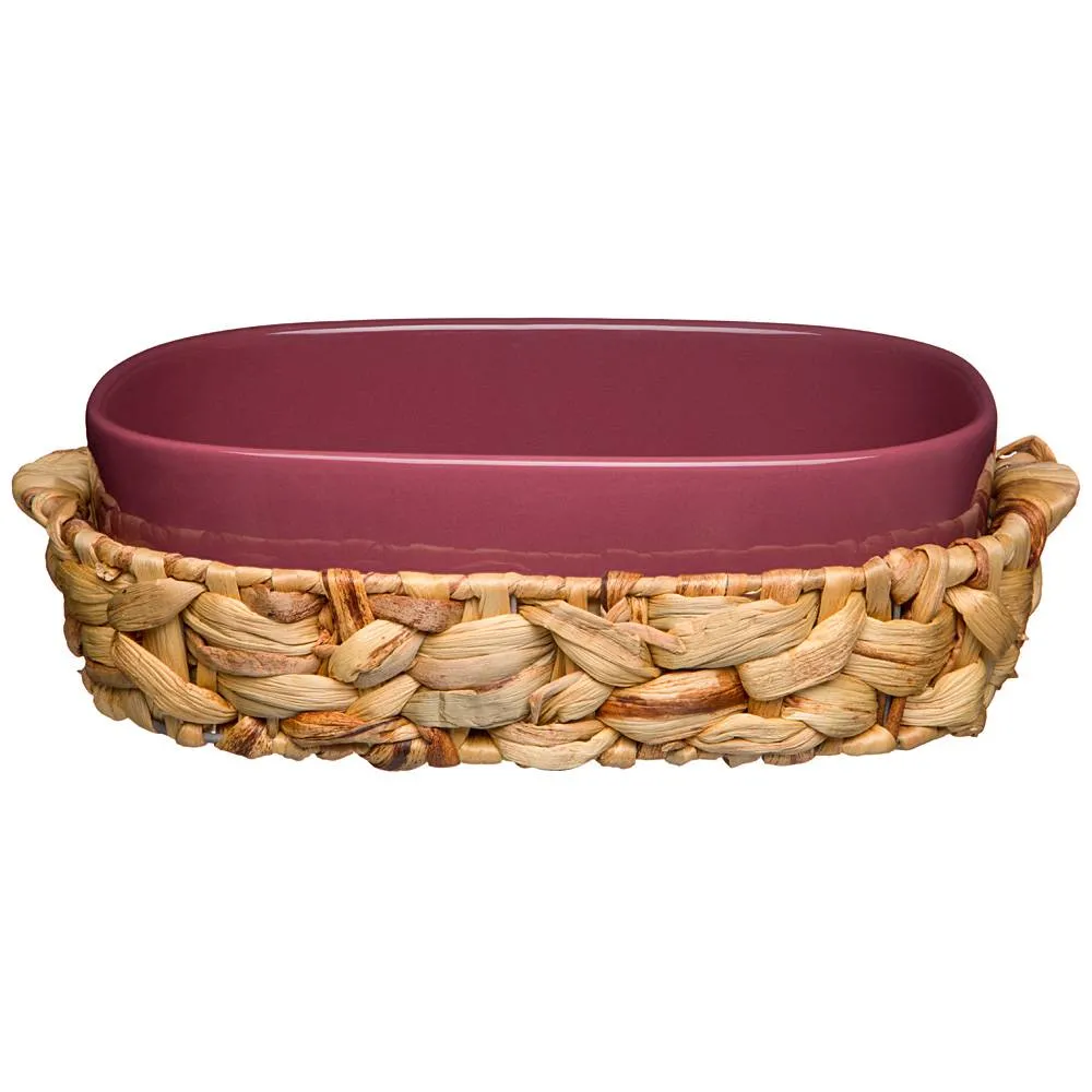 БЛЮДО ДЛЯ ЗАПЕКАНИЯ В ПЛЕТЕНОЙ КОРЗИНЕ BRONCO "FUSION" 29,5*20*8 СМ 1200 МЛ БРУСНИЧНОЕ 263-1158