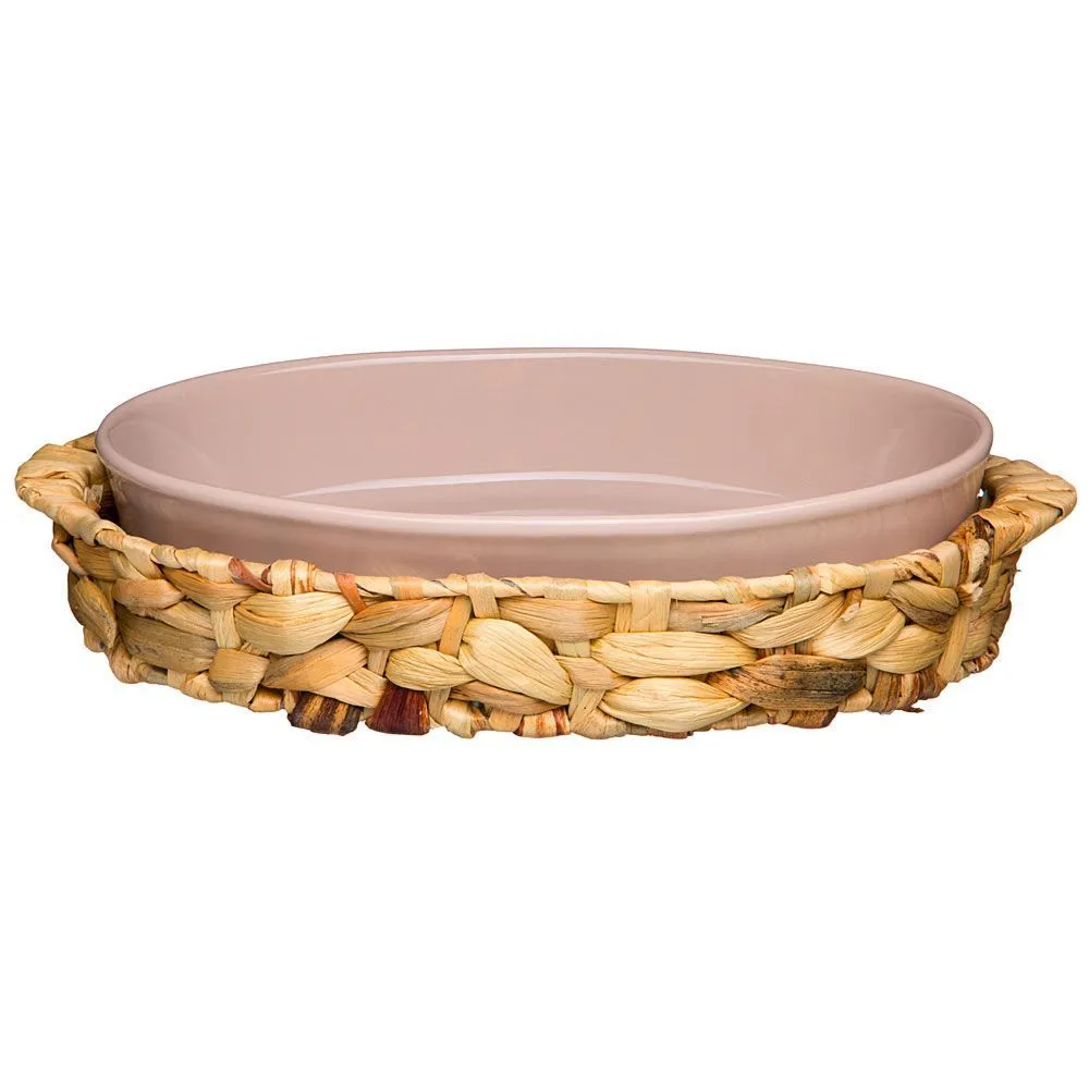 БЛЮДО ДЛЯ ЗАПЕКАНИЯ В ПЛЕТЕНОЙ КОРЗИНЕ BRONCO "FUSION" 32,5*20,5*6,5СМ 1200МЛ ПУДРОВОЕ 263-1161