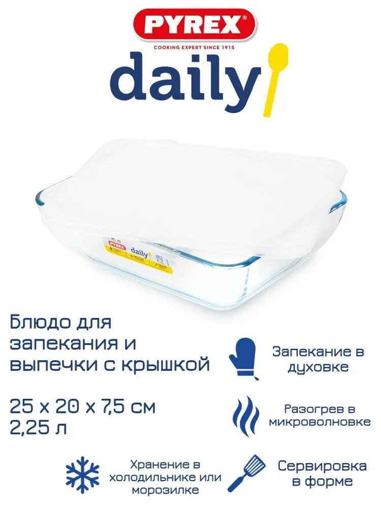 Блюдо для запекания и выпечки с крышкой DAILY 25x20x7.5см прямоугольное