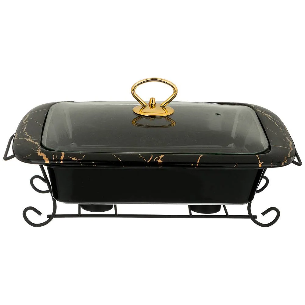 МАРМИТ СО СТЕКЛ. КРЫШКОЙ НА МЕТАЛ. ПОДСТАВКЕ ПРЯМОУГ."FANTASY" 3,0Л 41*27*11СМ, ЧЕРНЫЙ (42-302)