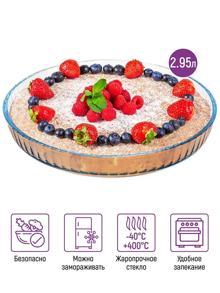 Блюдо для запекания "Плиссе" 32*32*5 см 2,95 л, круглое, внутренний размер 30*30 см