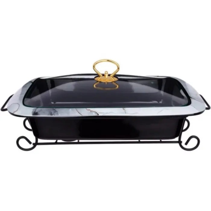 МАРМИТ СО СТЕКЛ.КРЫШКОЙ НА МЕТАЛ.ПОДСТАВКЕ ПРЯМОУГ."MOON ART" 3,0Л 41*27*11СМ ЧЕРНЫЙ 42-381