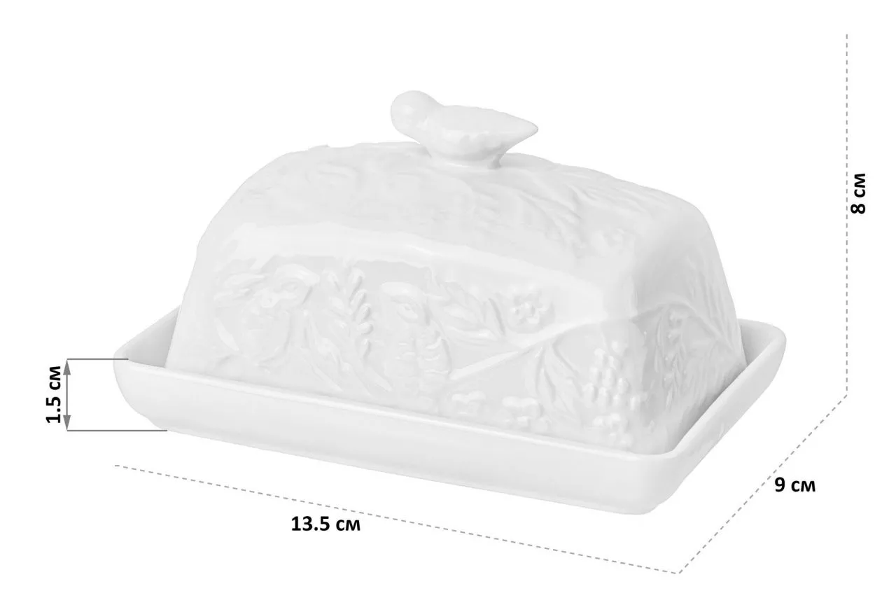 Масленка "Птички на ветке" 13,5*9*8 см, высота без крышки - 1,5 см
