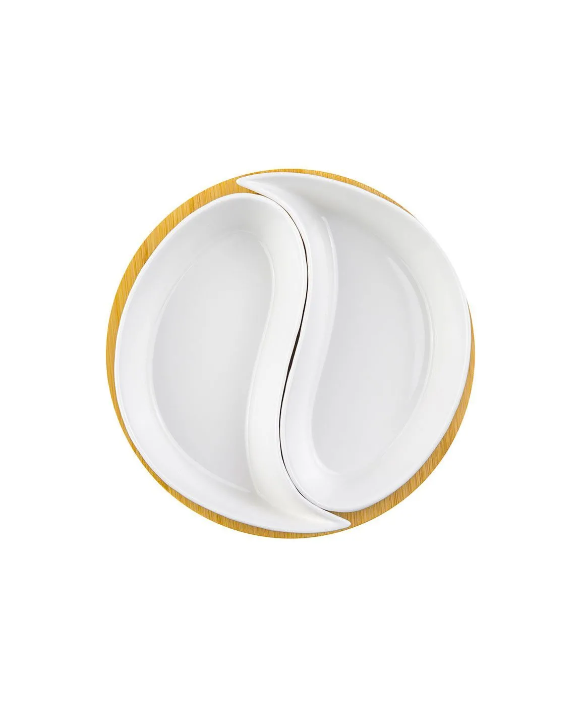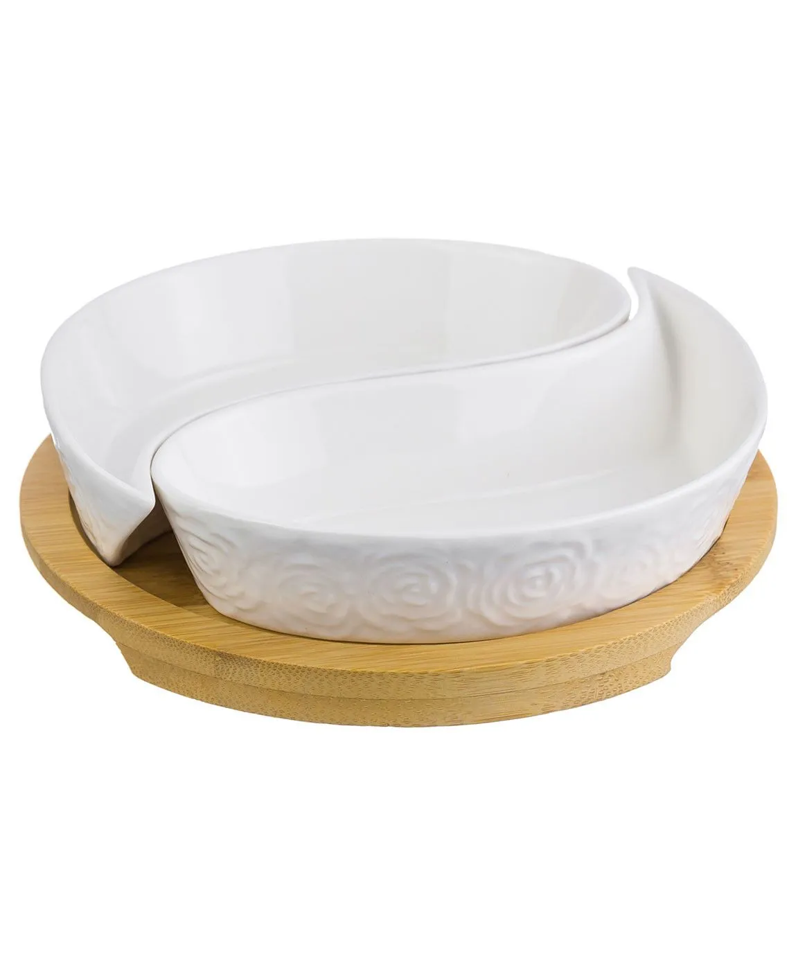 Менажница "Инь-Янь розы" 15*15*3,5 см, по 100 мл 14*9*2,5 см, на деревянной подставке, 15*15*1 см размер подставки
