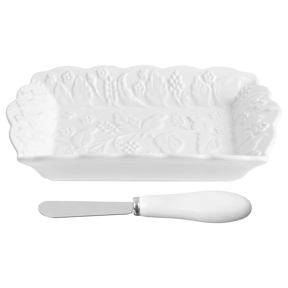 Тарелочка под масло "Птички на ветке" 18,5*11,2*3,4 см, с ножом, длина ножа - 13 см