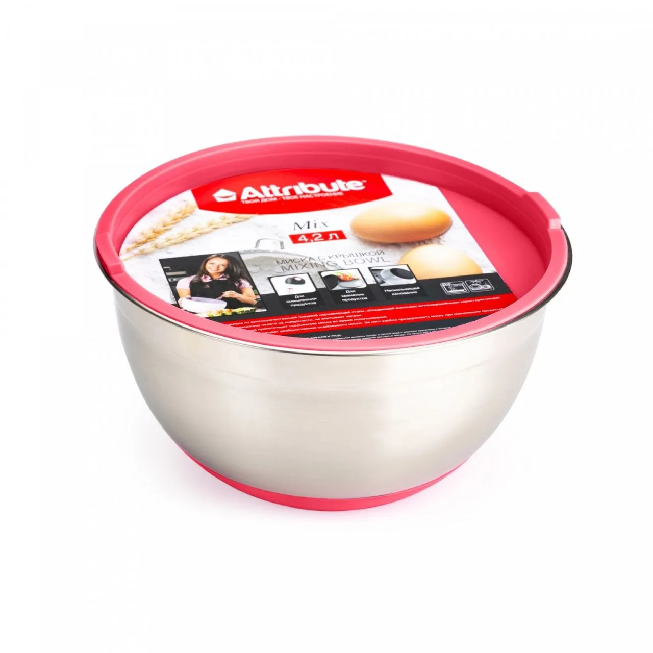 Миска стальная с крышкой MIX 24x12.5см 4.2л