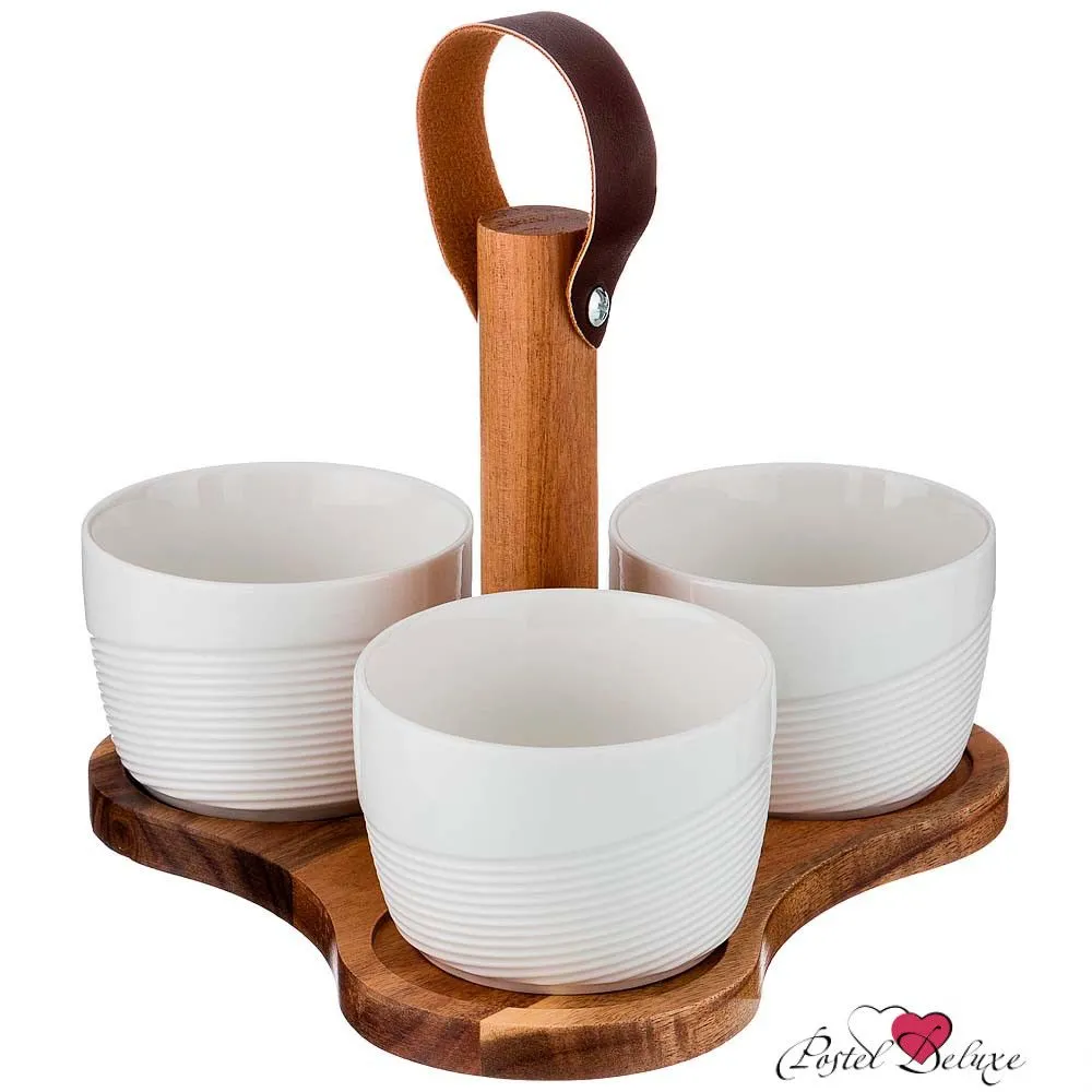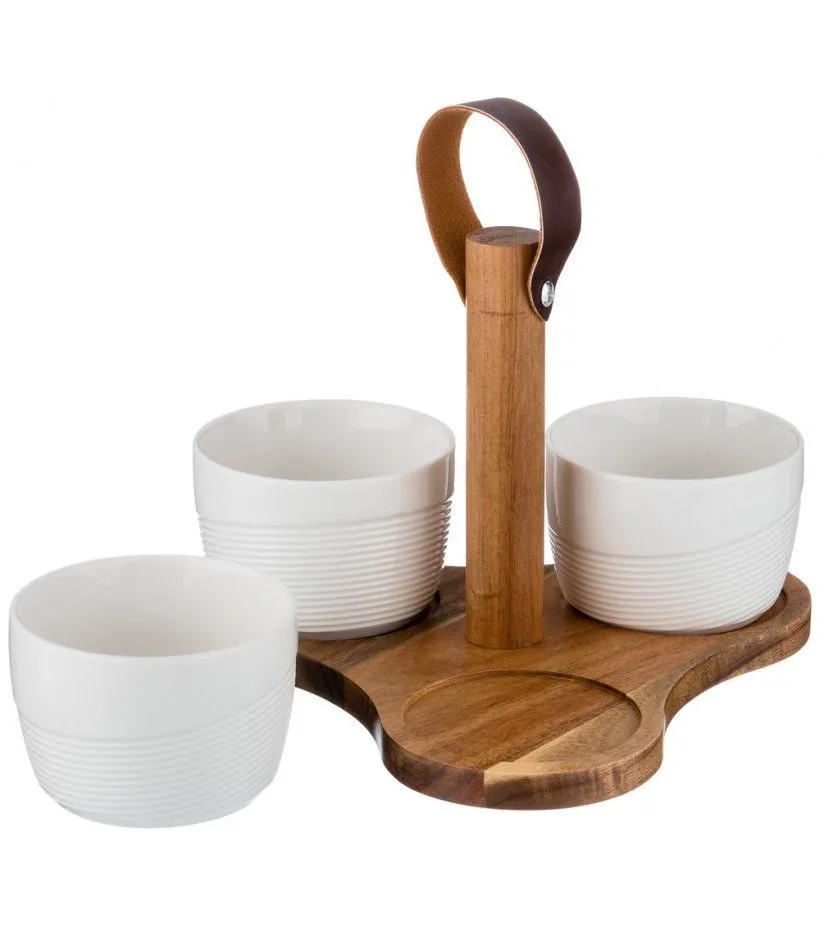 НАБОР СОУСНИКОВ ИЗ 3 ШТ. 8,5*8,5*6 220 МЛ. НА ДЕРЕВЯННОЙ ПОДСТАВКЕ С РУЧКОЙ (КОР=24НАБОР.)