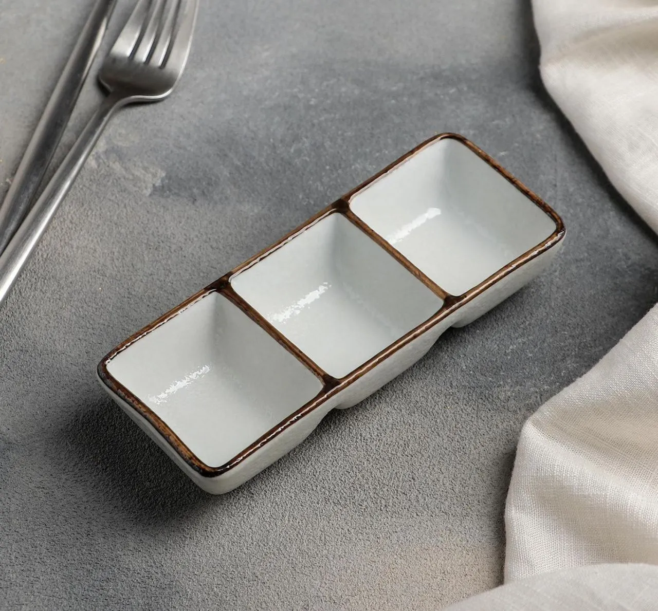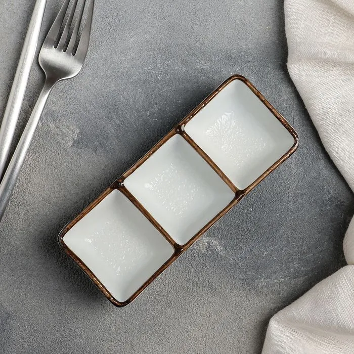 Соусник 3 ячейки "Браун" 14,5х6х3 см 4336428