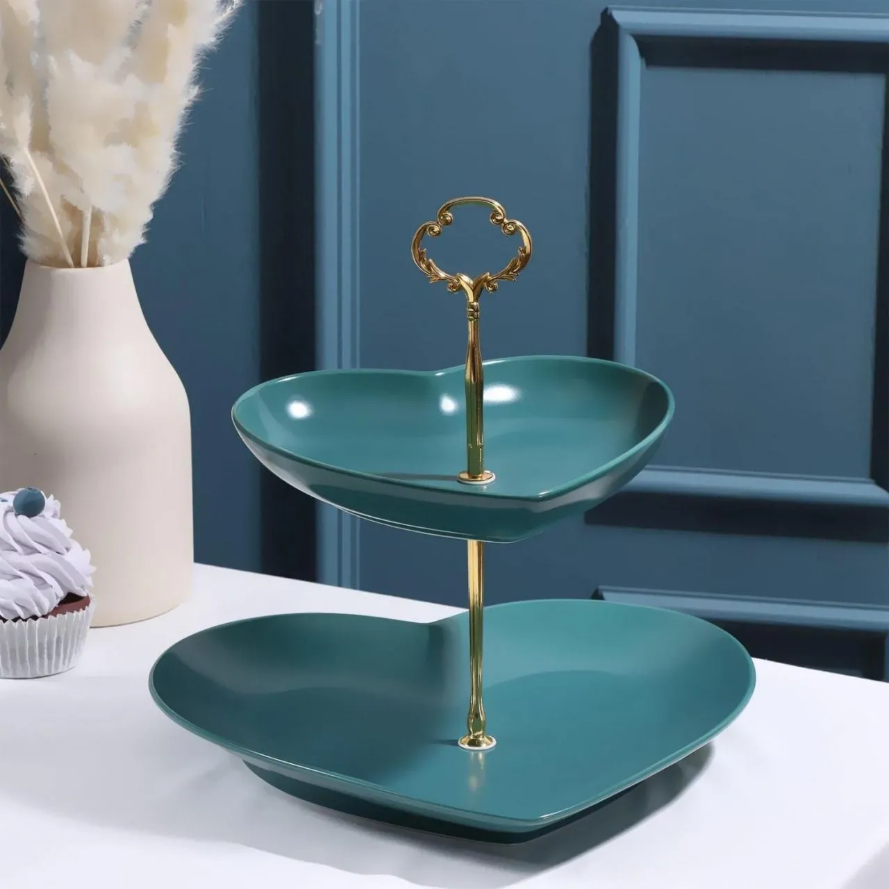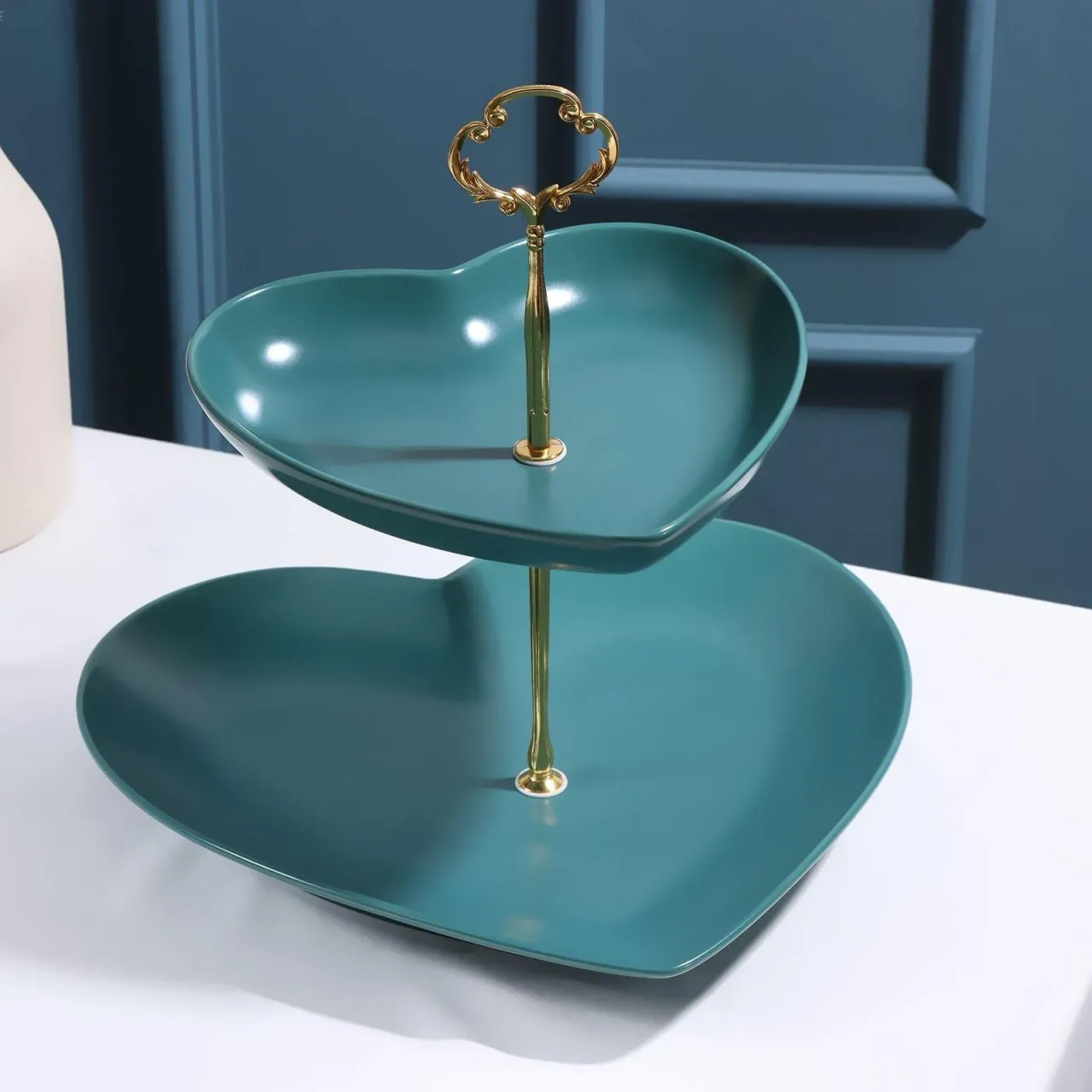 Блюдо 2 яруса "Сердца" 19х28/26х26 см, цвет зеленый 5752439