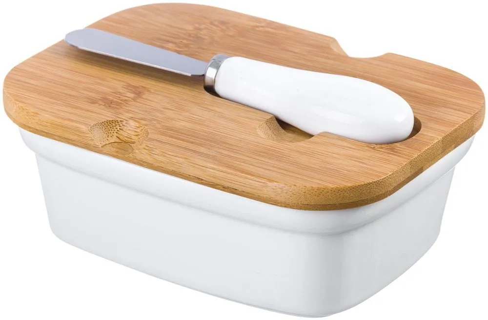 Паштетница "Айсберг волны" 14,8*11,2*5,5 см 390 мл с деревянной крышкой и ножом с фарфоровой ручкой