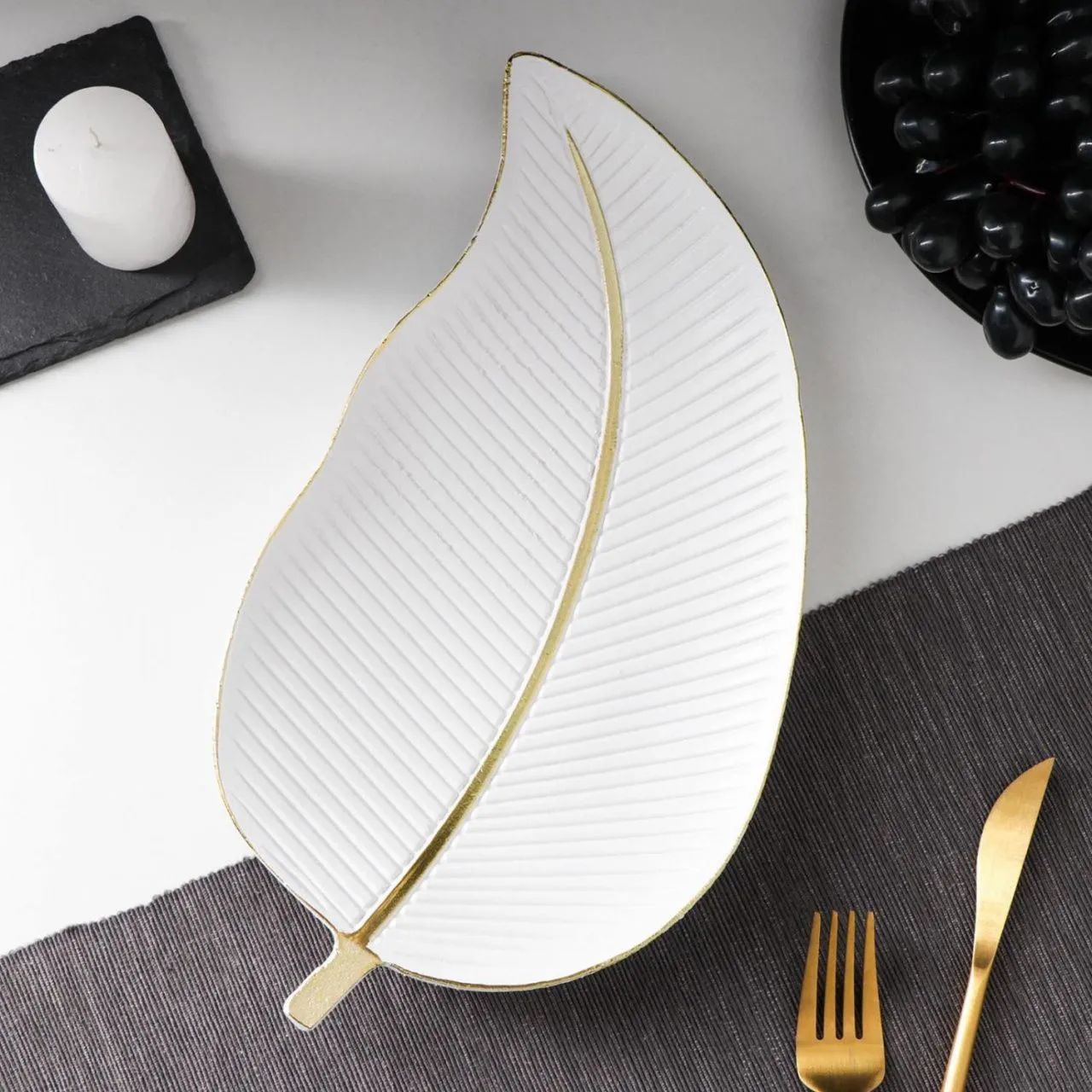 Блюдо для фруктов "Золотой лист" 31х17х3 см, цвет белый 5800992