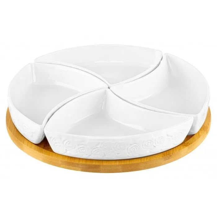 Менажница "Розы" 25*25*6 см, 4 секции, 180 мл - каждая секция, на крутящейся деревянной подставке