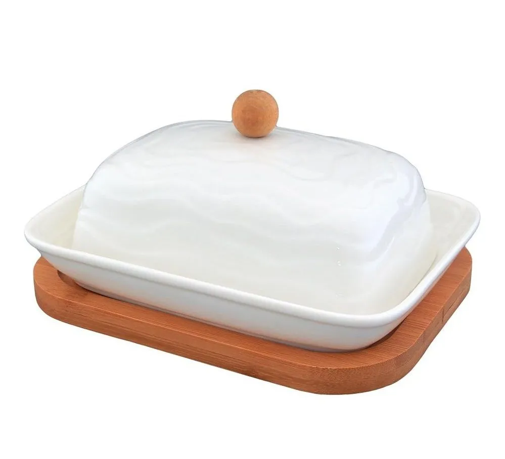 Масленка "Розы" 16*12,2*8,3 см, с ножом с фарфоровой ручкой, высота без крышки - 2 см, длина ножа - 12,8 см