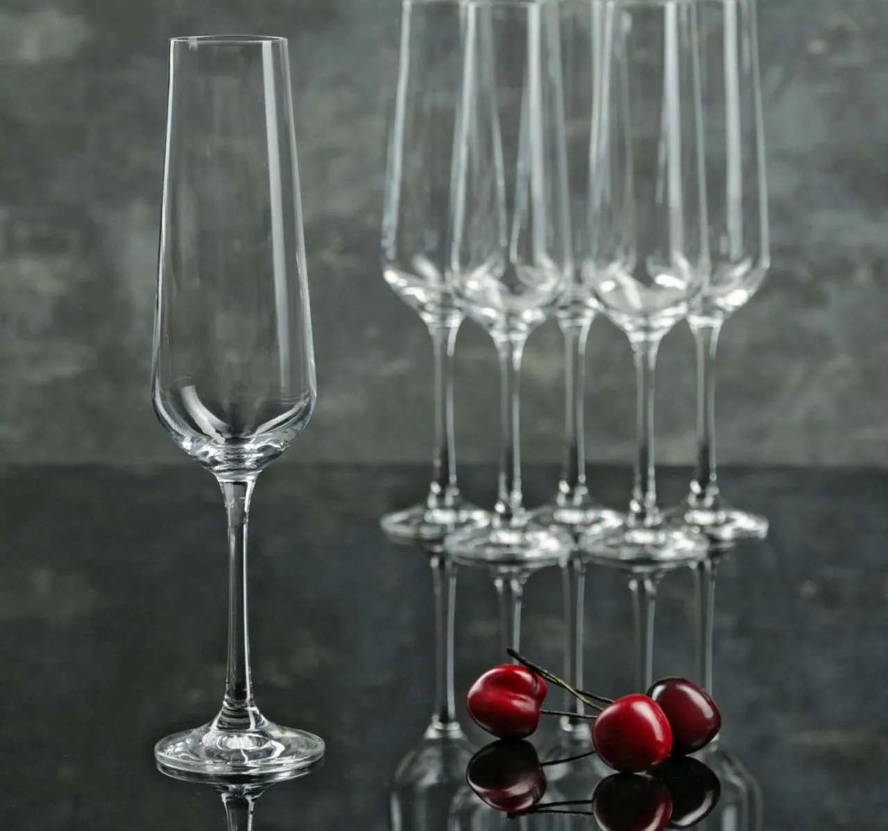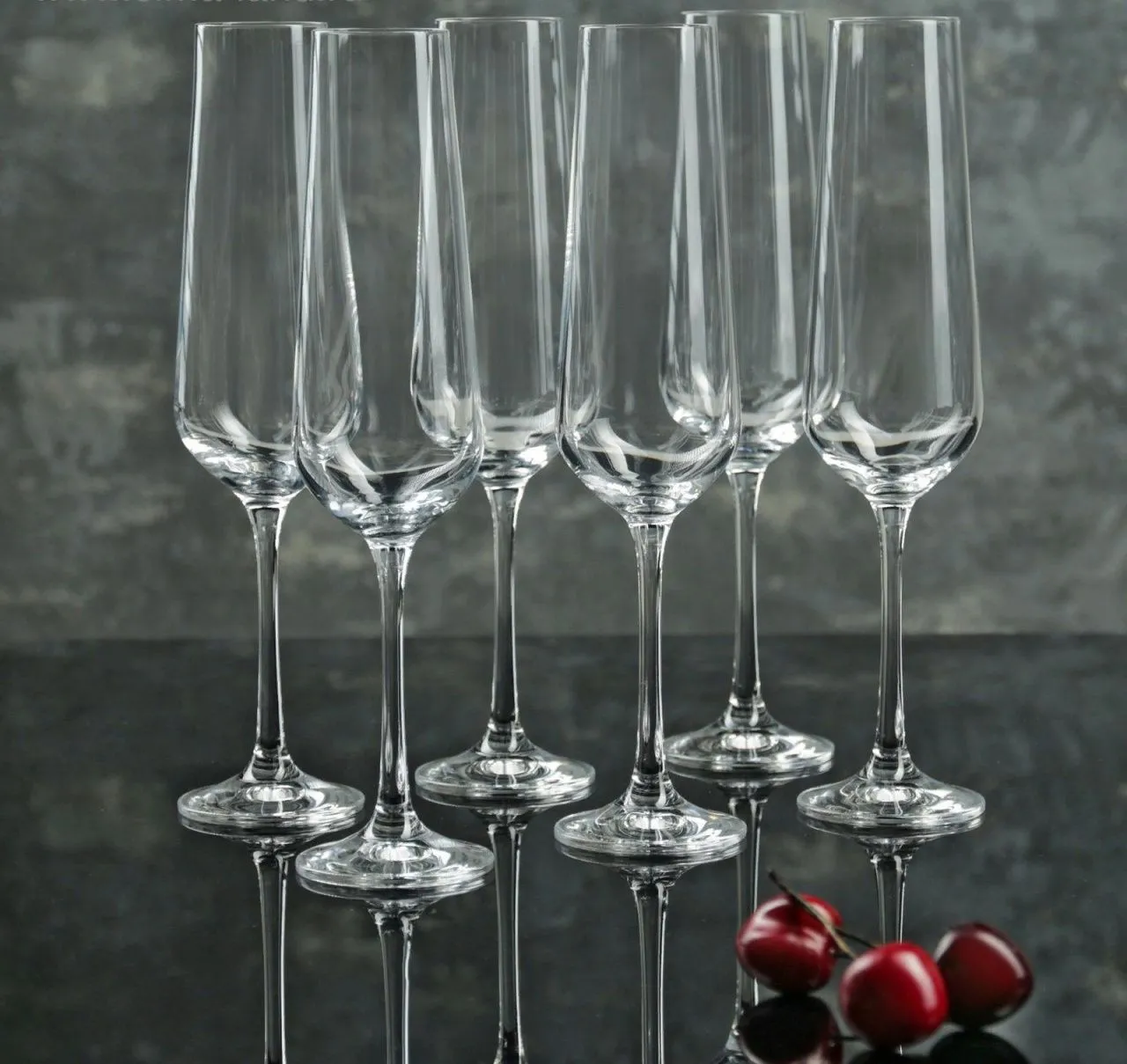 НАБОР БОКАЛОВ ДЛЯ ШАМПАНСКОГО ИЗ 6 ШТ. "САНДРА" 200 МЛ. ВЫСОТА=25 СМ.