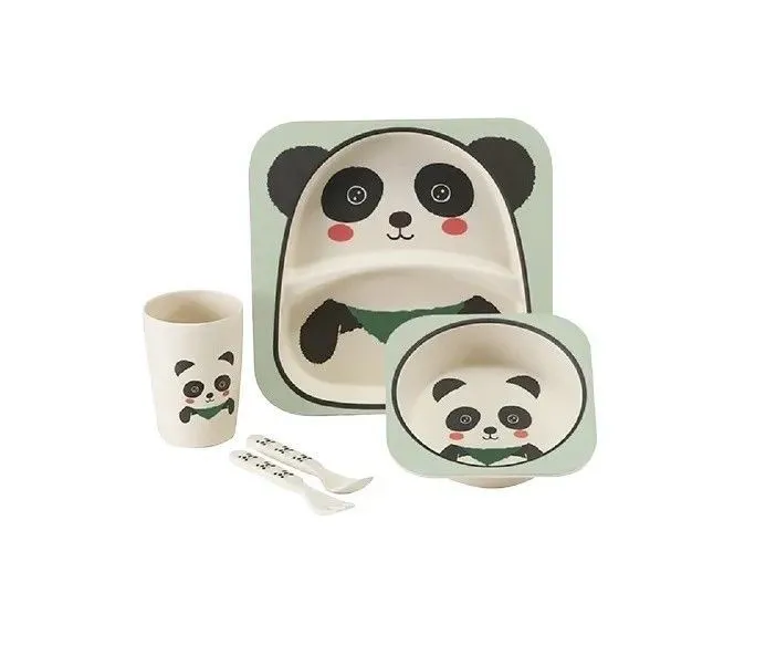 Набор бамбуковой посуды «Панда», 5 предметов: тарелка, миска, стакан, вилка, ложка 4780231