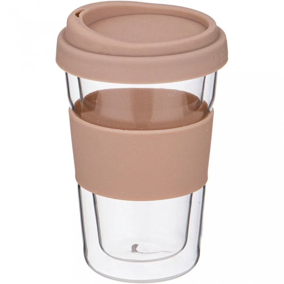 СТАКАН С ДВОЙНЫМИ СТЕНКАМИ "DOUBLE-WALL" 330 МЛ. С СИЛИК.КРЫШКОЙ ДИА=9,5 СМ. В=15 СМ. (250-152)