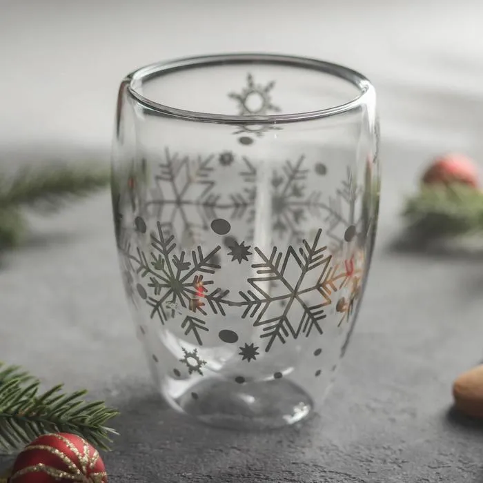 Стакан с двойными стенками "Поль. Снежинки" 350 мл, 8,5х12 см 6919839
