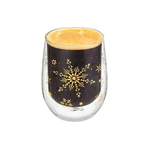 Стакан "Снежинки" 9*9*11 см 350 мл с золотым узором и двойными стенками, стекло