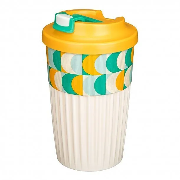 СТАКАН ДЛЯ ГОРЯЧИХ НАПИТКОВ С КЛАПАНОМ И ДЕКОРОМ "Геометрия" 450МЛ (Оранжевый)