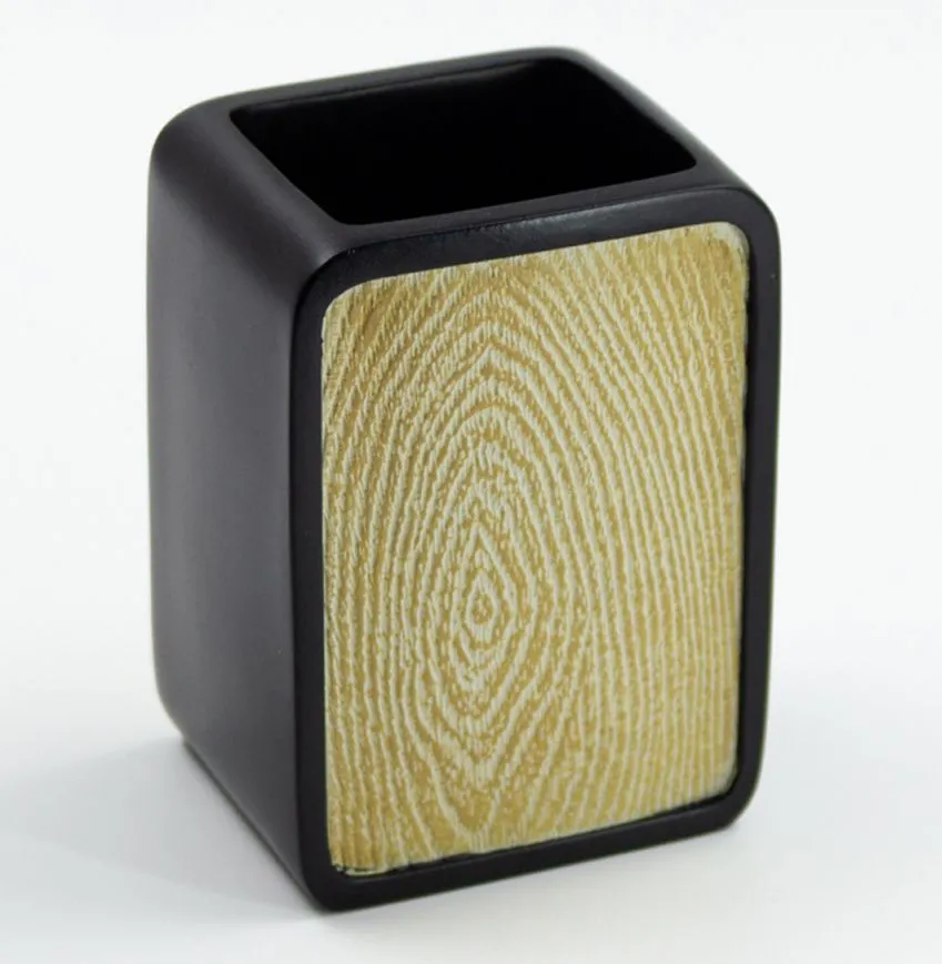 Стакан из полирезина черный с древесным декором