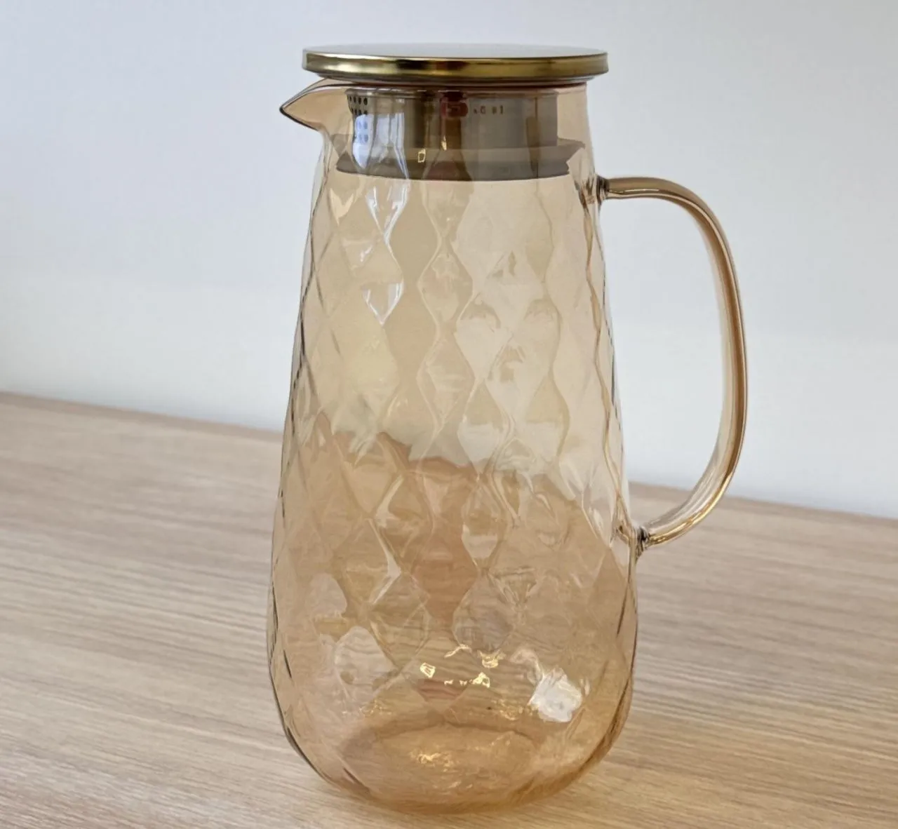 #Графин из жаропрочного стекла конический "гальванический ромбик" золотой 1500мл с металлической крышкой VR-25