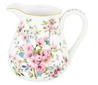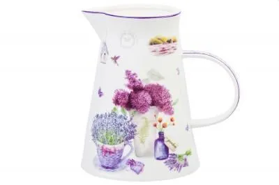 #Графин из жаропрочного стекла прозрачный матов "Охлажденные напитки" конический 1600мл, с золотистой крышкой и ручкой VR-23