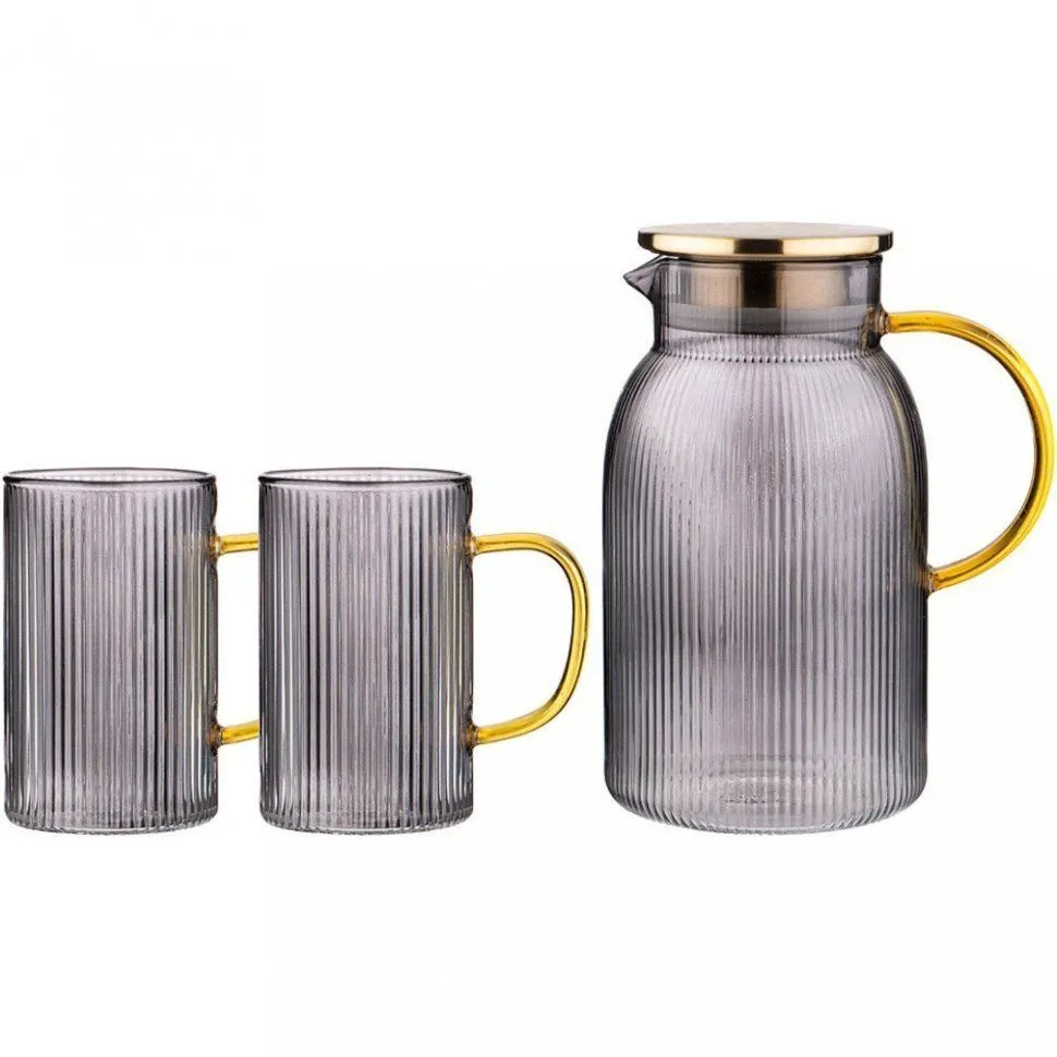 НАБОР AGNESS "SMOKY" КУВШИН С КРЫШКОЙ ФИЛЬТРОМ 1600 МЛ + 2 КРУЖКИ 320 МЛ ЦВЕТ:ДЫМЧАТЫЙ 889-151