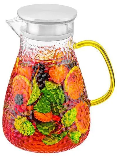 Кувшин "Арт деко" 18*14*21,5 см 1,8 л с позолоченной ручкой, с металлической крышкой с силиконовым уплотнителем, стекло