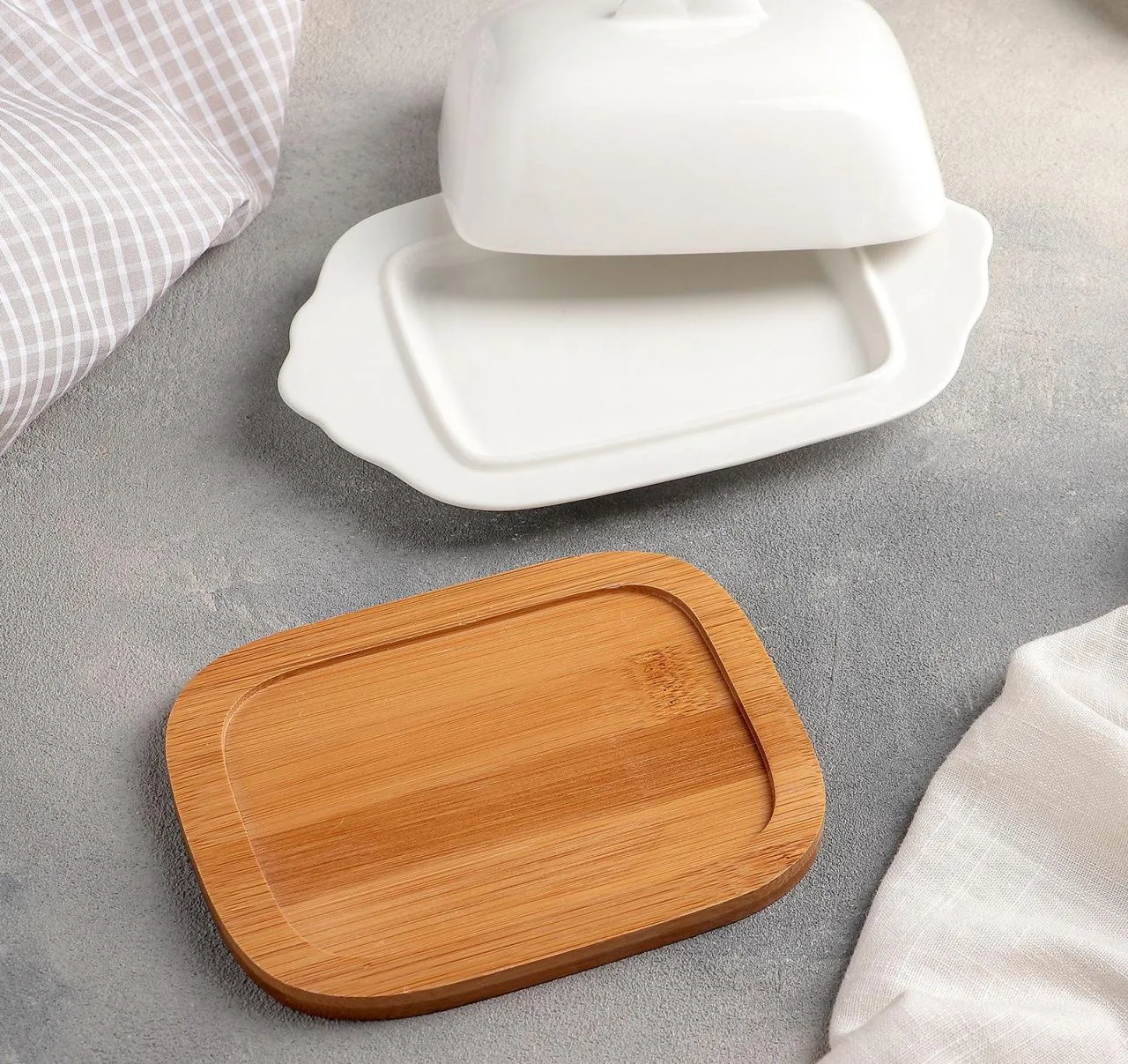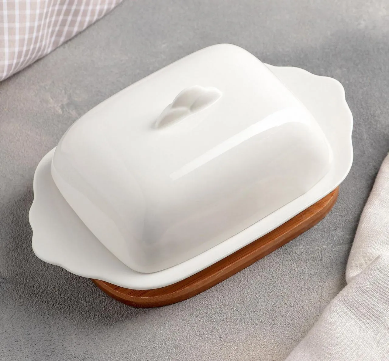Масленка на дерев подставке "Эстет" ( крышка 10х13,5х5,5 см) 19,5х11х8 см 2635911