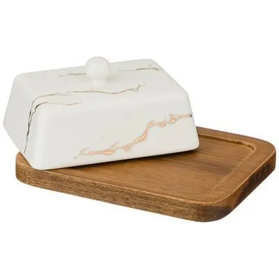 МАСЛЕНКА НА ДЕРЕВЯННОЙ ПОДСТАВКЕ КОЛЛЕКЦИЯ "ЗОЛОТОЙ МРАМОР" ЦВЕТ: WHITE