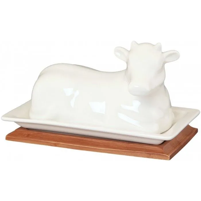 Масленка "Коровка" 20*11,5*11,5 см, с крышкой, на деревянной подставке