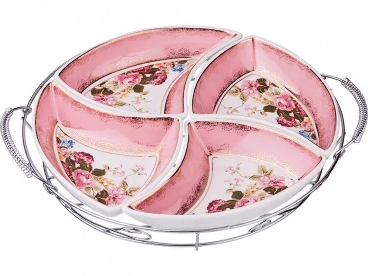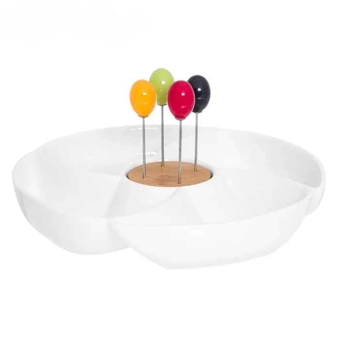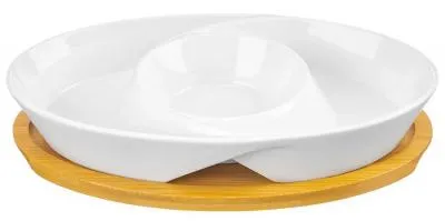 Менажница "Айсберг" 23*23*19 см., цельная, 4 секции, с деревянной ручкой