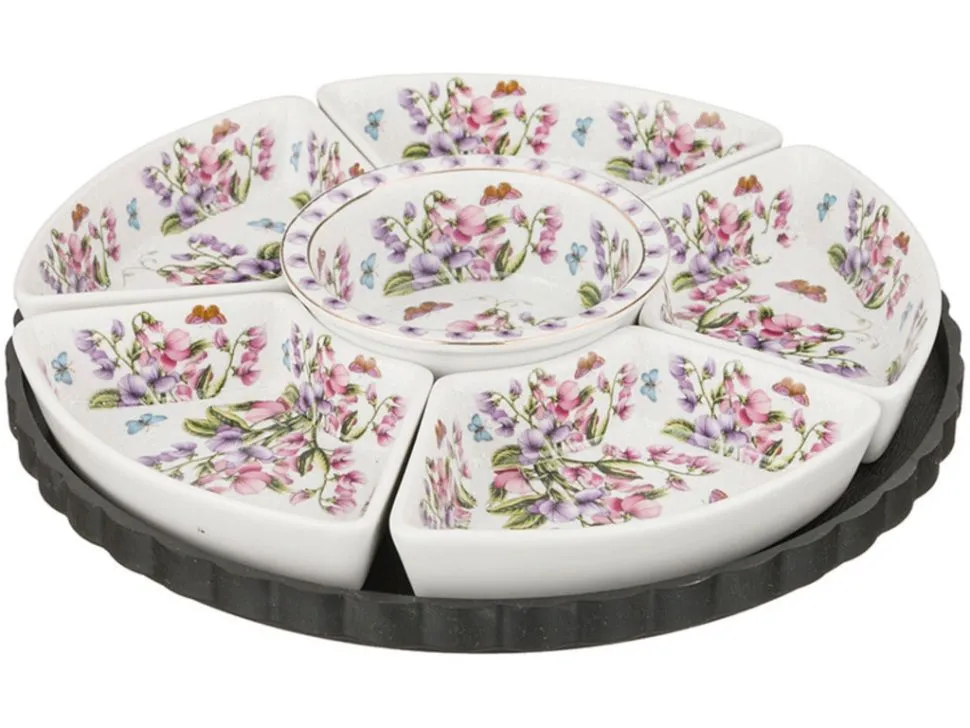 Менажница "Айсберг" сердце 27*27*7 см, 4 секции, 200 мл - каждая секция, на крутящейся деревянной подставке