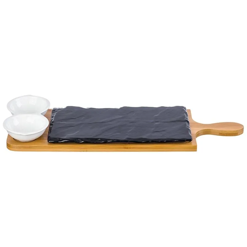 Набор для сервировки сыра "Айсберг" 43*16*3 см разделочная доска 42*14,2*1 см, поднос - 25*13*1 см и соусник с двумя секциями 15,5*7,7*2,7 см, 80 мл к