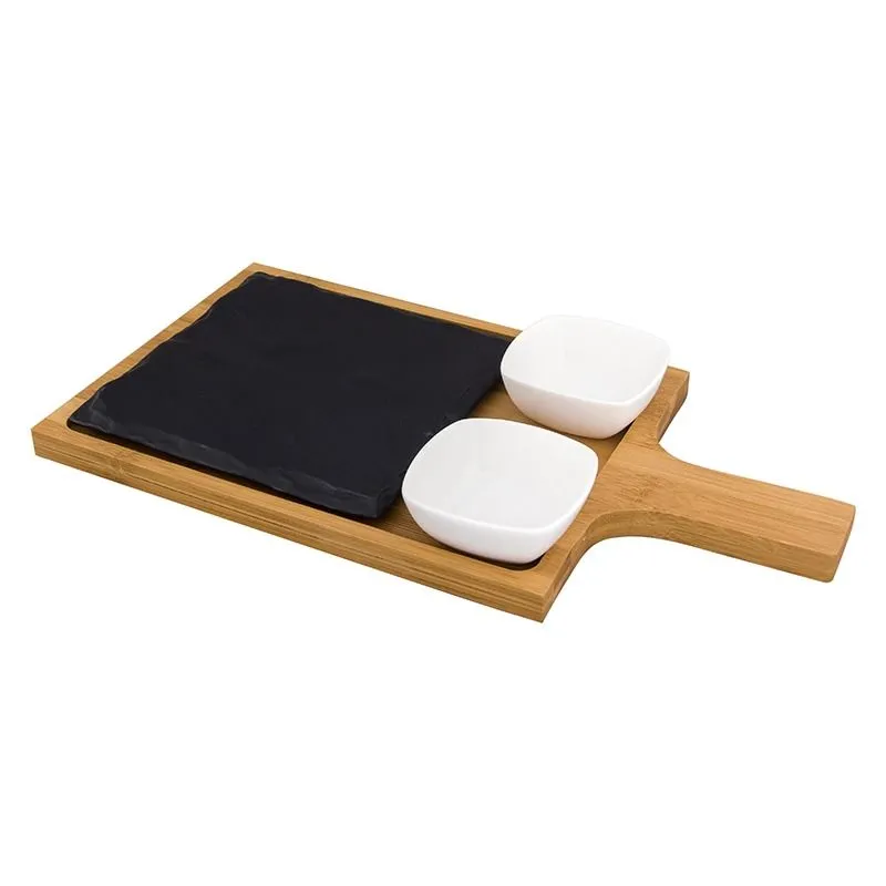 Набор для сервировки сыра "Айсберг" 35*19*4 см, разделочная доска - поднос с подставкой для сыра и 2 соусниками - 7,3*7,3*3 см 70 мл