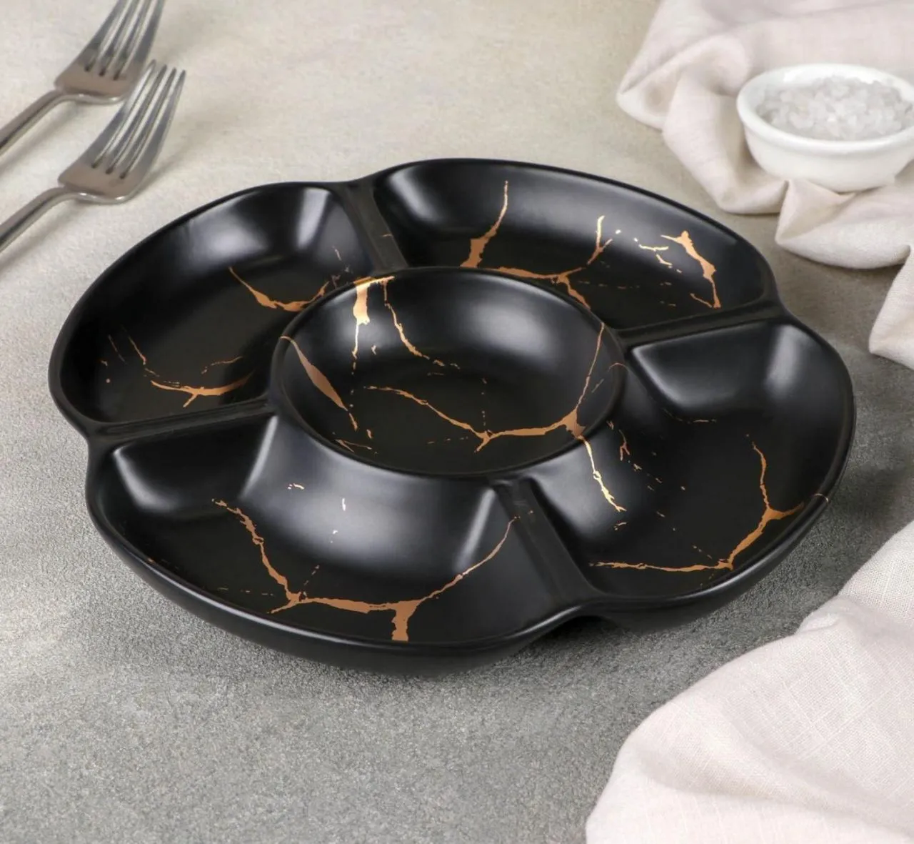 Менажница 5 ячеек "Марбл" 22,8x2,2 см, цвет чёрный 4721603