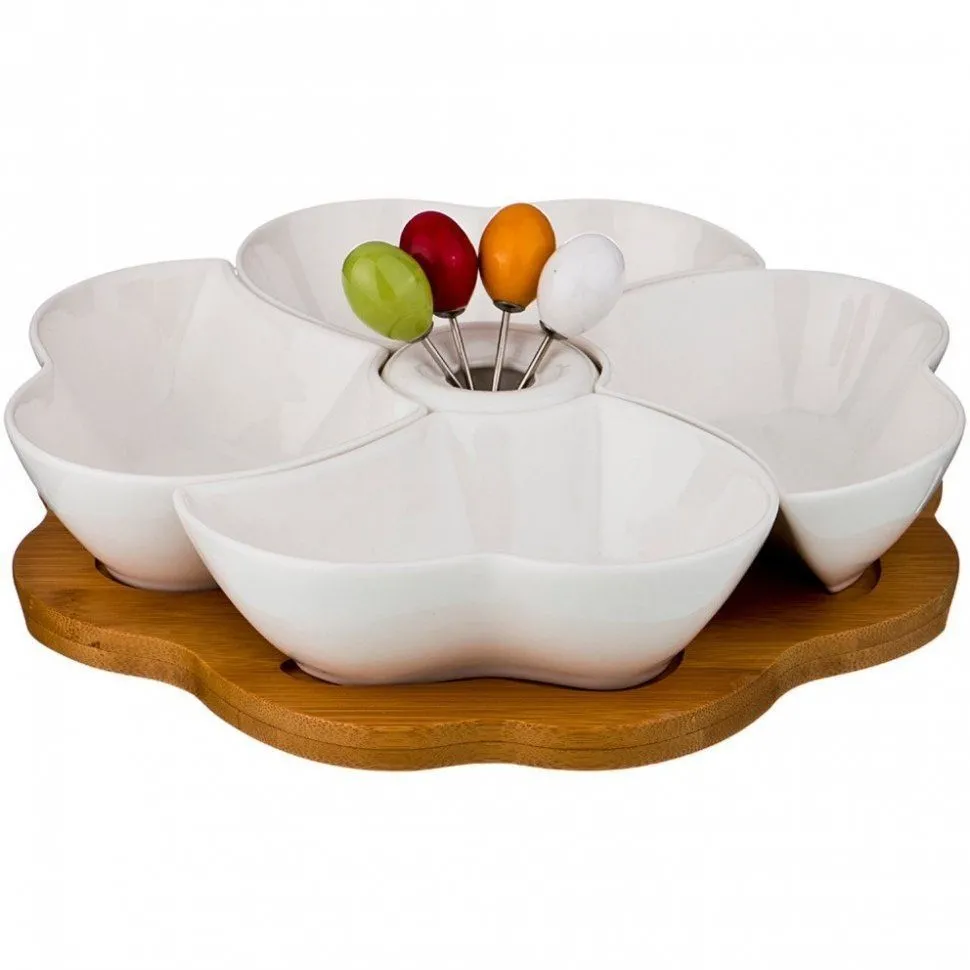 Менажница 4-Х Секционная Диаметр=24 См Высота=5,5 См + 4 Вилочки 587-107