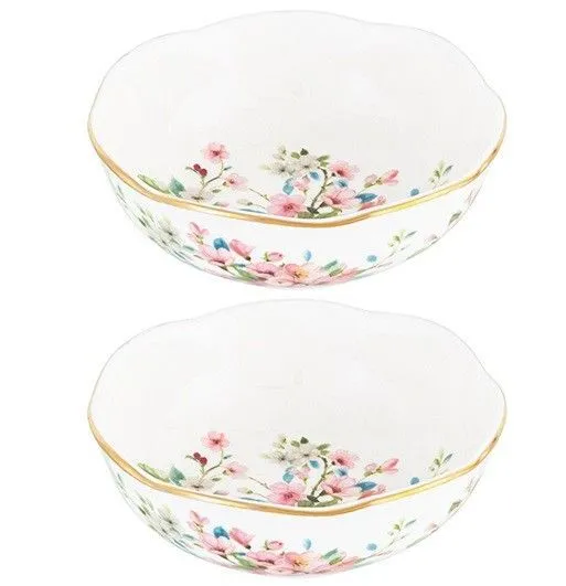 Розетка для варенья "Яблоневый цвет на белом" 2 предмета, 9,5*9,5*3 см 120 мл - каждая, NEW BONE CHINA, в п/у