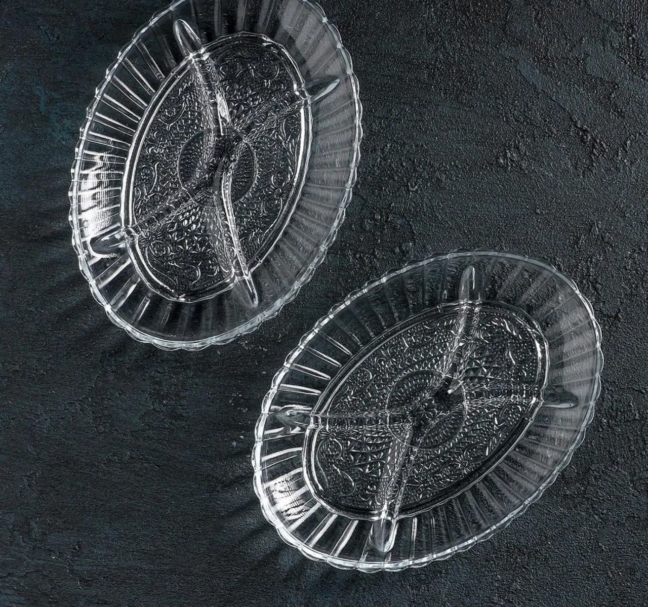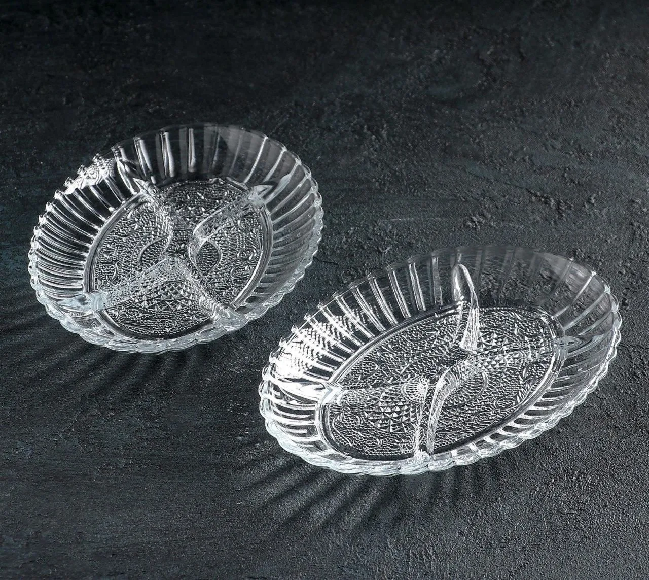 Набор овальных менажниц 220*156ММ НК.ДК.(КОНЬЯ) 2-Х ШТ прозрачное рифленое стекло