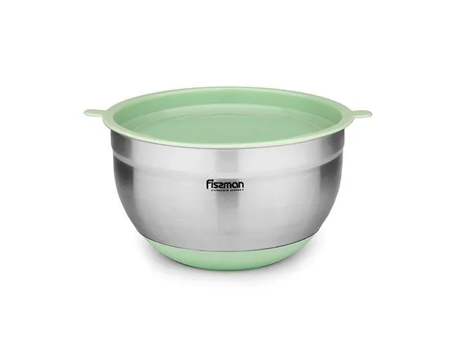 5113 FISSMAN Миска 3л 20x12см цвет ЗЕЛЕНЫЙ ЧАЙ (нерж.сталь) Крышка - пластик Дно с силиконовым основанием.