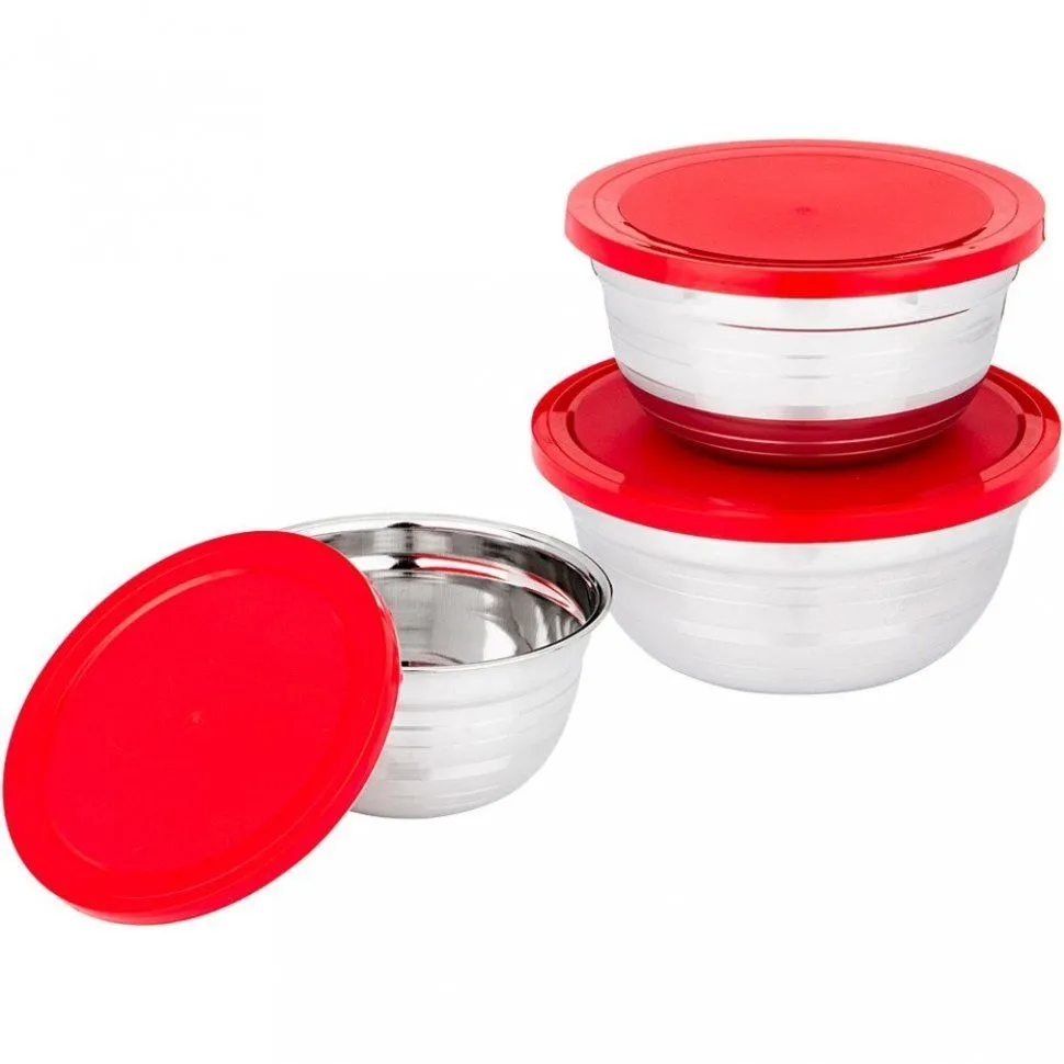 #НАБОР МИСОК AGNESS С КРЫШКАМИ, 6 ПР, 0,6/1/1,3 Л. D=14/16/18 CM 880-130
