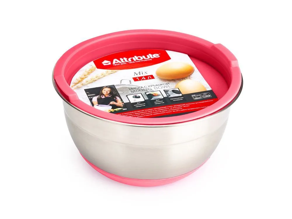 Миска с крышкой MIX красная 1.4л