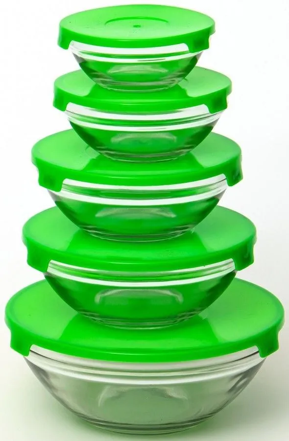 Миска (салатник) с крышкой 900мл/470мл/350мл/200мл/130мл, стекло, зеленая, 153-39002 OLAFF