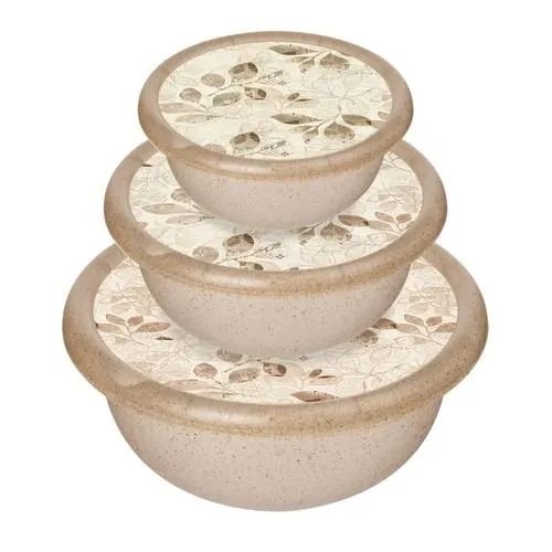 Комплект мисок Palermo 3 шт. (1,2л+2,1л+3,2л) с крышками с декором (бесцветный флэк)