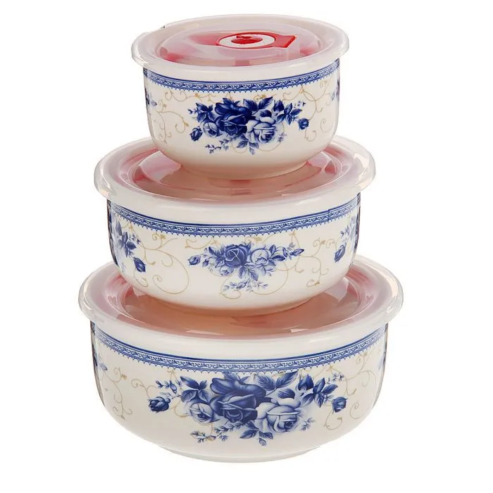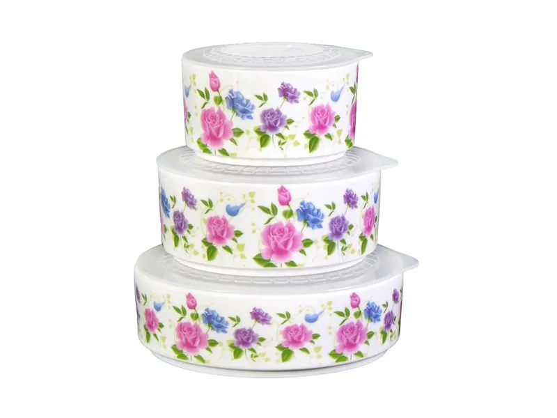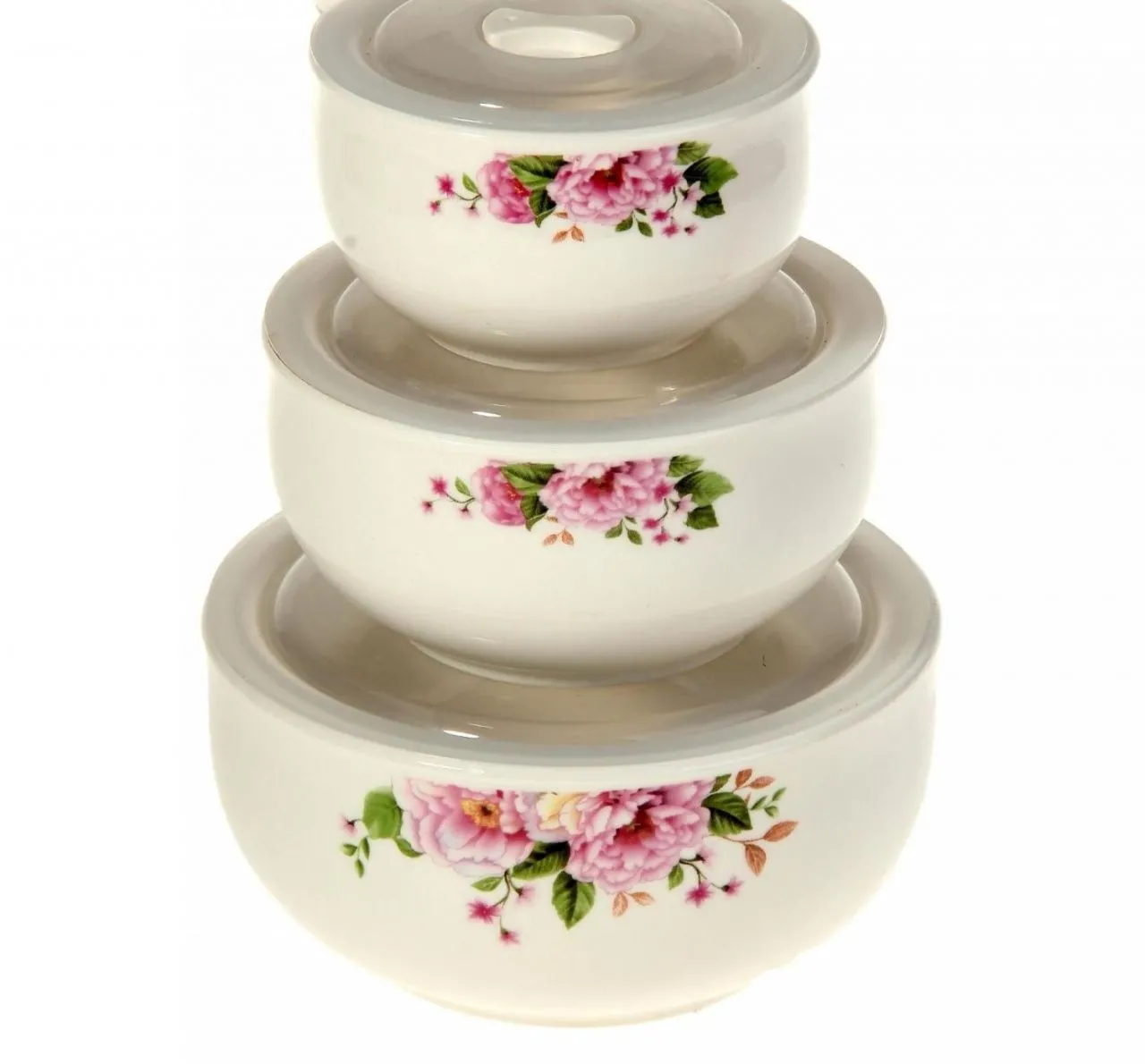 Набор салатников керамических 3шт с крышками "Пионы" ВН051