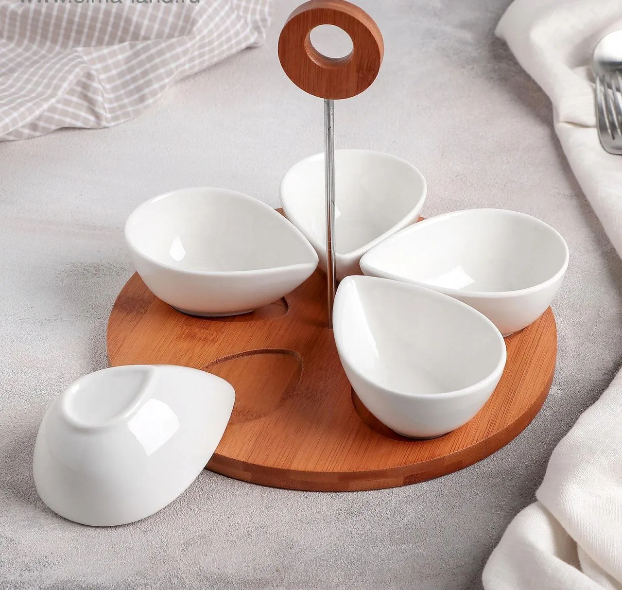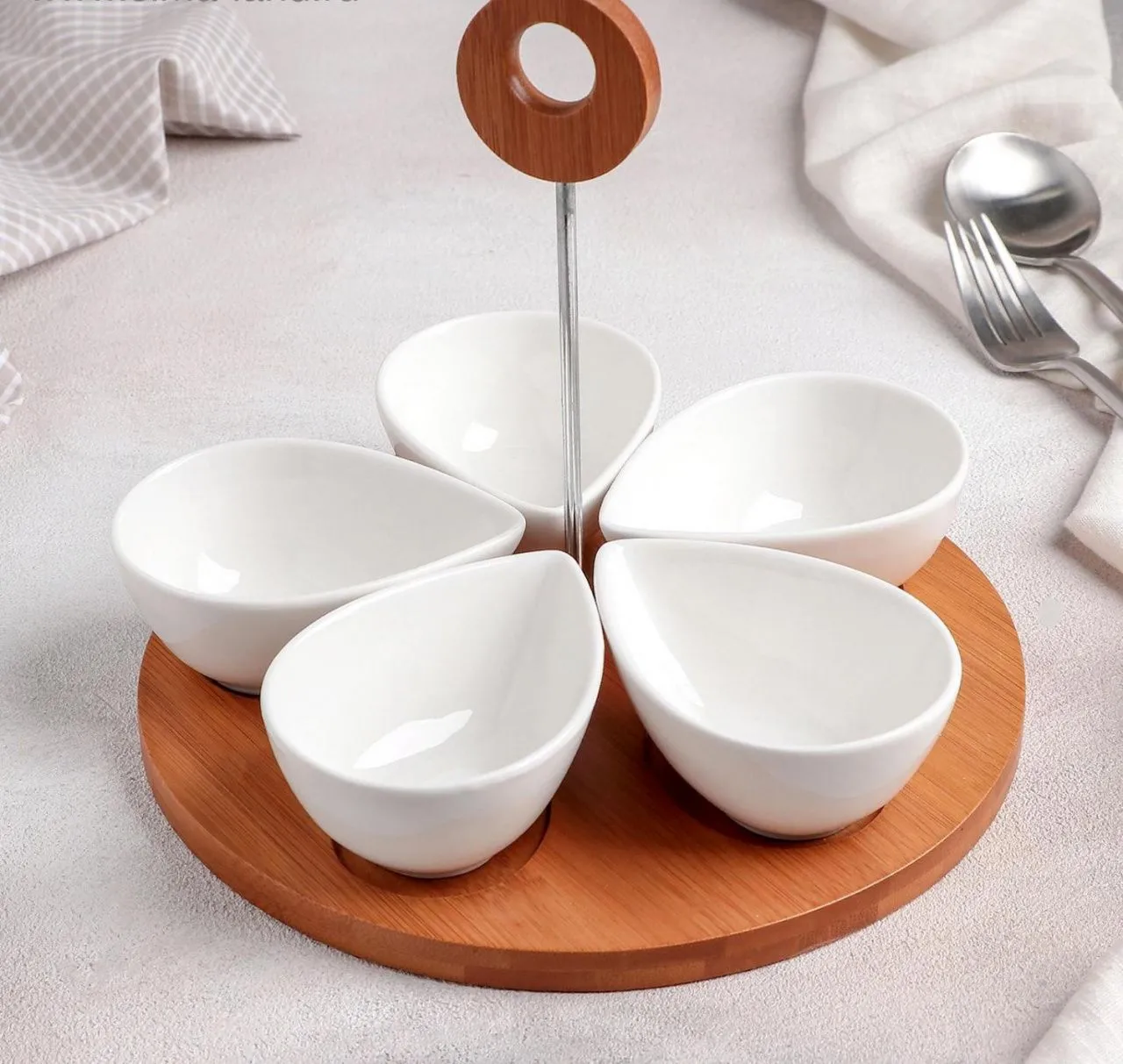 #Набор салатников на дерев. подставке 5 шт "Эстет.Лепесток" 762802