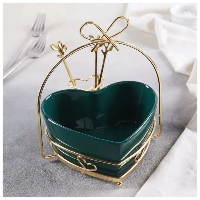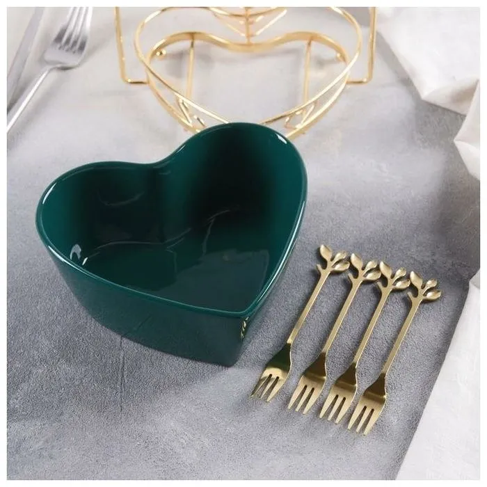 Салатник "Сердце" 9х20,5 см, 4 вилочки, цвет зеленый 5185553