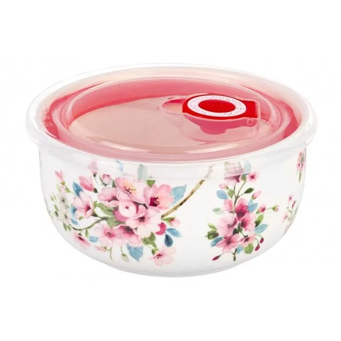 Салатник с пластиковой крышкой "Яблоневый цвет на белом" 13*13*6,5 см 560 мл, размер без крышки 12,5*12,5*6,5 см, крышка с силиконовым уплотнителем, б