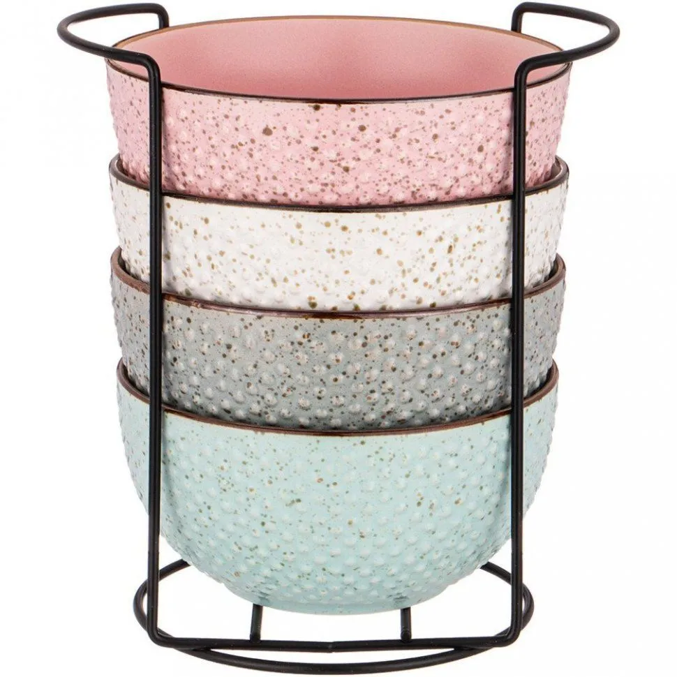 НАБОР САЛАТНИКОВ ИЗ 4 ШТ. НА МЕТАЛЛИЧЕСКОЙ ПОДСТАВКЕ КОЛЛЕКЦИЯ "COSMOS" 14*7,3 СМ,700 МЛ